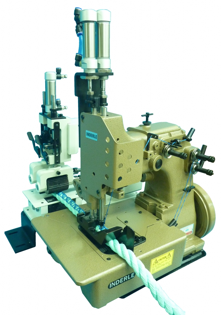IDL-81500-EXCZ-P is 3 threads overedging sewing machine for attaching extra heavy duty rope on nets with pneumatic twin puller and air foot lifting.